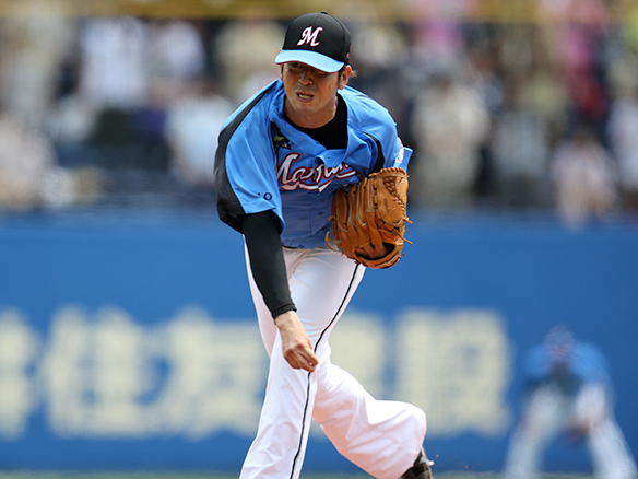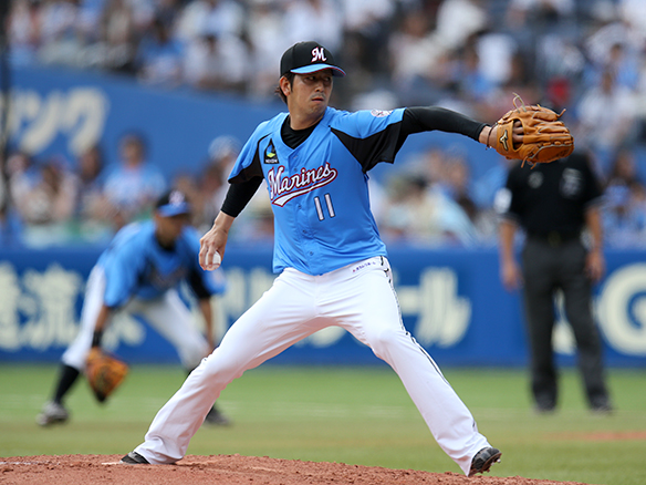 投手 金子千尋 7番 福浦 二ゴ 外角の落ちる球を打つもセカンドゴロ 1アウト |