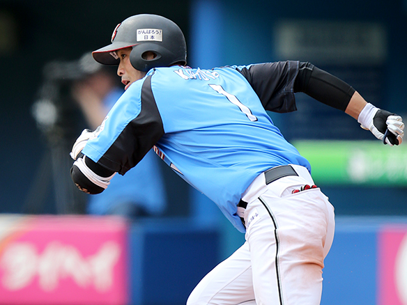 投手 金子千尋 1番 清田 四球 外角のストレートを見送り四球を選ぶ 1塁 |