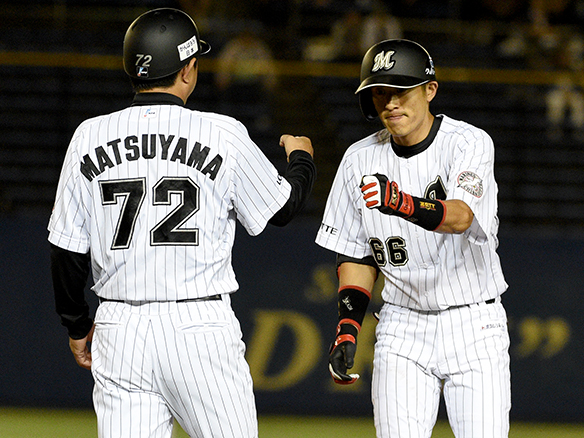 | 1番 清田 左安 2アウト3塁の3-2からレフトへのタイムリーヒット ロ4-0楽 1塁  4 0  | |