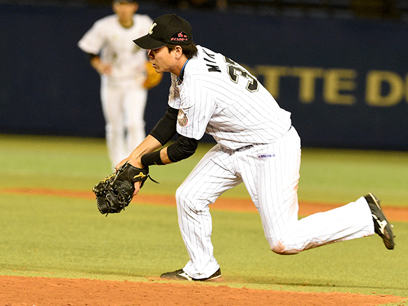 三木は難しい打球にタイミングを合わせてきっちり処理