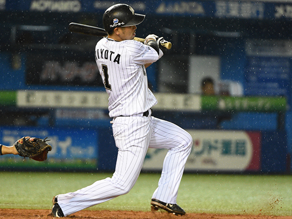 8番 レアード 左安 レフトへのヒットで出塁 1,2塁 |