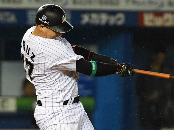 8番 レアード 空三振 ワンバウンドした球に空振り、三振を喫する 2アウト |