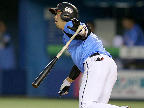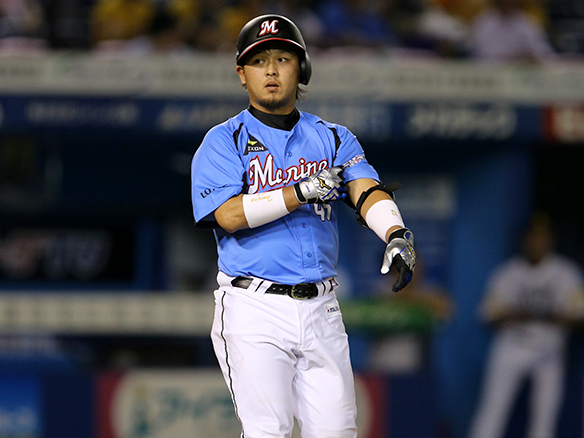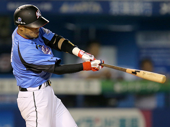 8番 福浦 左安 レフトへのヒットを放つ 1塁 |