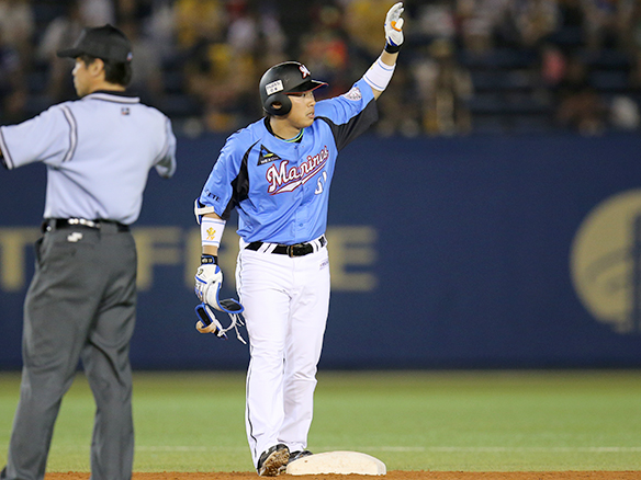 1番 角中 中越二 2-1からセンターへの先制タイムリーツーベース! ロ1-0ソ 2塁 ![]() 1