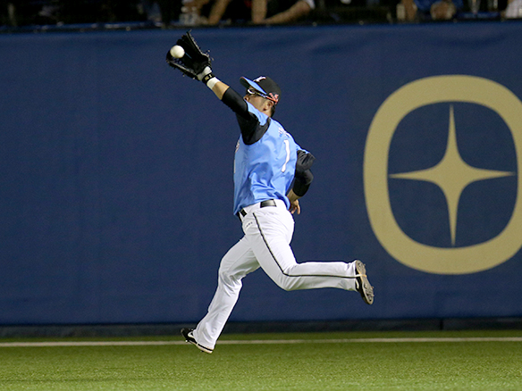 6番 根元 左飛 一打先制の場面で外角のストレートを打つもレフトフライ 3アウトチェンジ |