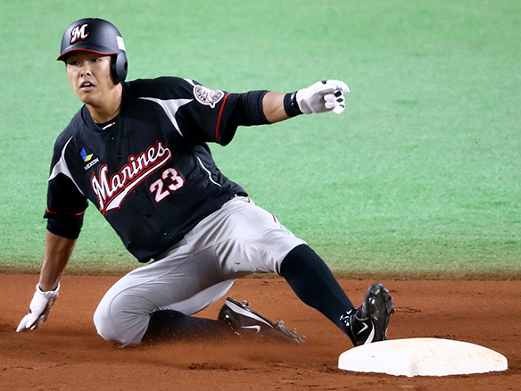 2番 明石 中安 センターへのヒットで出塁 1塁 |
