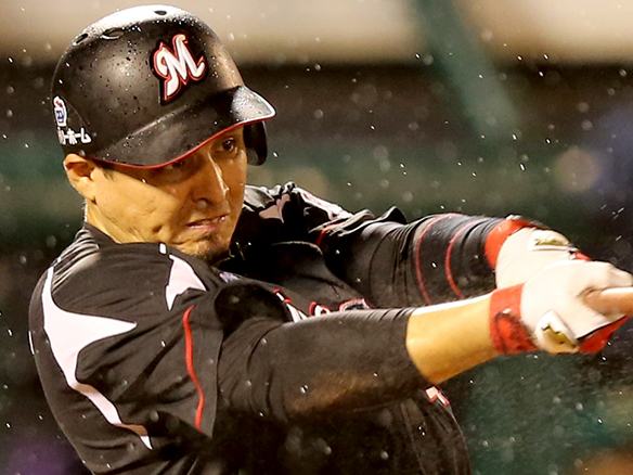 2番 角中 右安 高めのフォークをライトへ打ってヒット 1,2塁 |