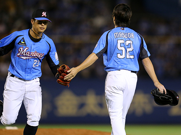 投手 大嶺祐 ピッチャー大嶺祐に代わって香月良がマウンドにあがる 守備変更:角中ライト→レフト 守備変更:清田→ライト |