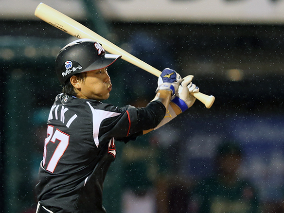 5番 伊志嶺 左安 ランナー1,3塁からレフトへのタイムリーヒット 楽2-0ロ 1,2塁 ![]() 2