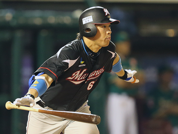 2番 角中 右安 ライトへのヒットを放つ  |