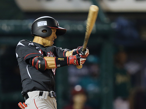 4番 デスパイネ 左安 レフトへのヒットを放つ 1,3塁  |