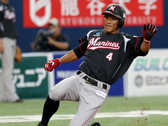 レフト前への打球で、荻野貴が2塁から一気に生還!