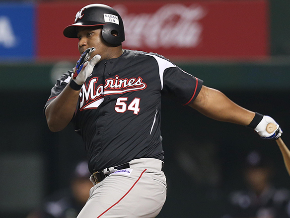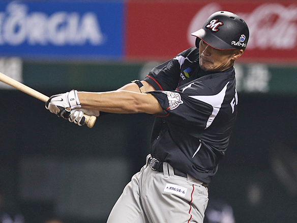 5番 福浦 右安 2アウト1,3塁の0-1からライトへのタイムリーヒット 西7-6ロ 1,3塁 ![]() 5