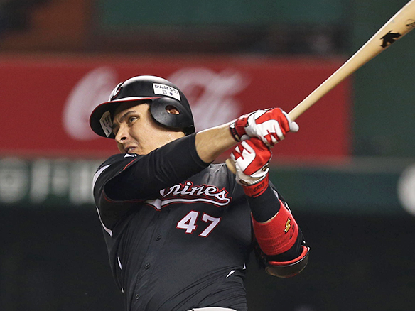 投手 十亀 7番 クルーズ 左本 レフトのポールに直撃する打球はホームランとなる 西4-1ロ ![]() 3