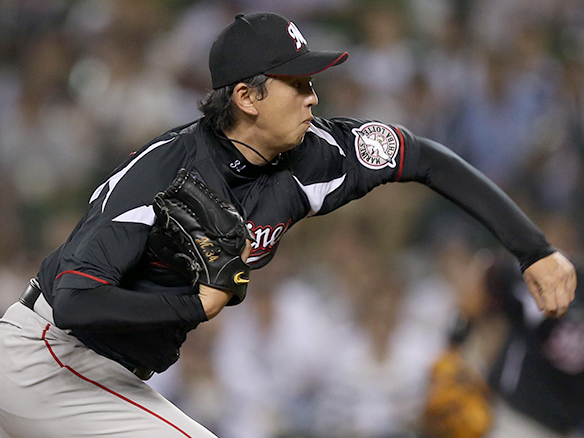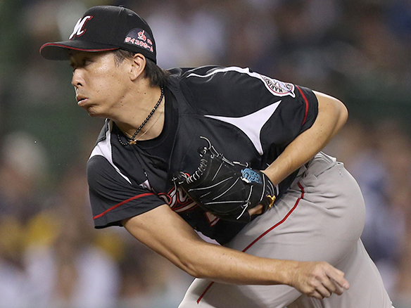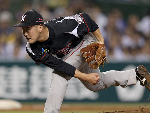 投手 郭俊麟 ピッチャー郭俊麟に代わって田中がマウンドにあがる |
