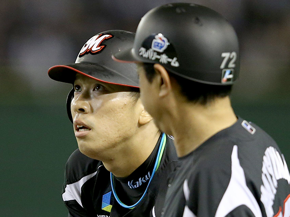 2番 角中 死球 死球を受ける 1,2塁 |