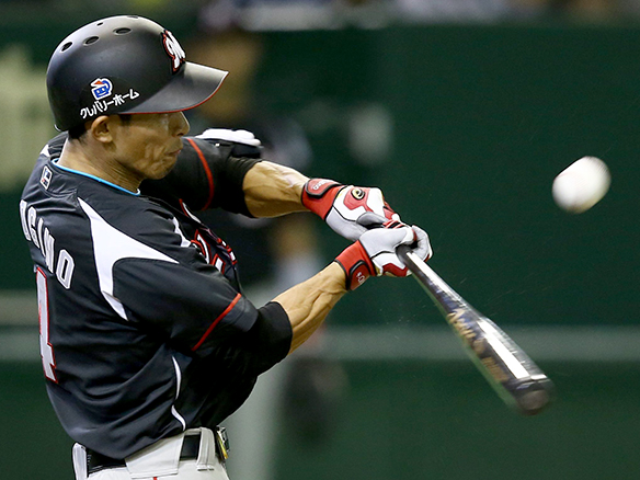 初球の直球を叩きレフト前ヒットを放った角中