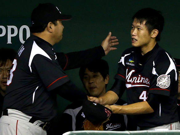 投手 チェン 守備交代:ファースト福浦 |
