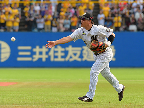 5番 井口 一邪飛 ファウルフライを李大浩(一)がつかんでバッターアウト 2アウト |