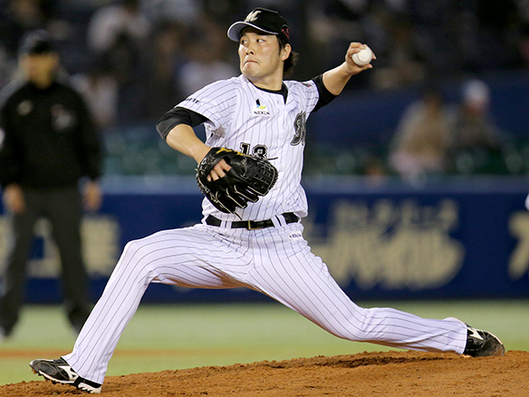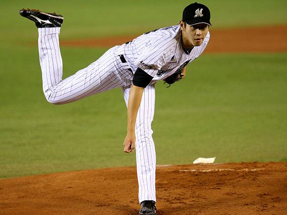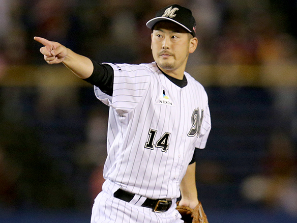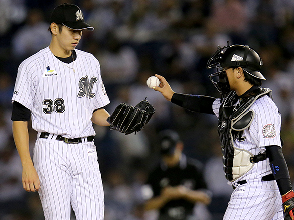 イ・デウンは打たせて取る投球で楽天打線を三者凡退に抑える