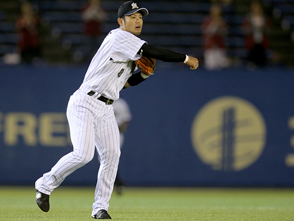 投手 福山 8番 福浦 遊ゴ 一打同点の場面で外角の真っ直ぐを打つもショートゴロ 3アウトチェンジ |