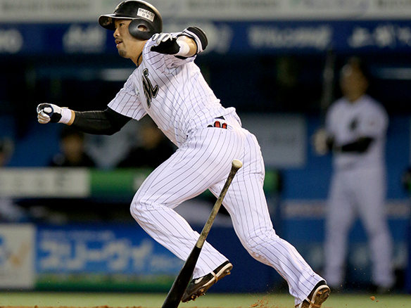 5番 井口 中安 センターへポテンヒットを放つ 1,2塁 |