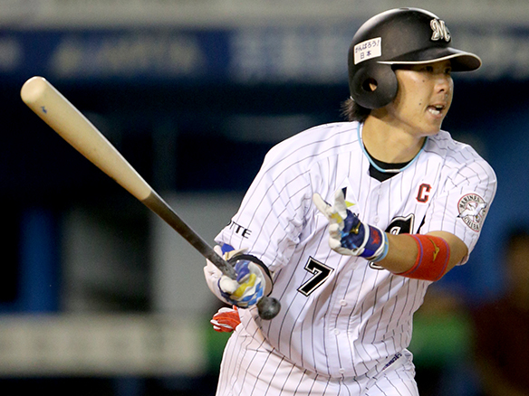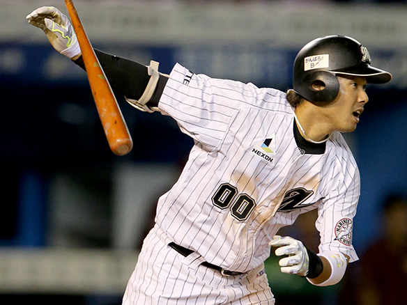 5番 高濱 右安 2アウト3塁からライトへのタイムリーヒット ロ2-4楽 1塁 ![]() 2