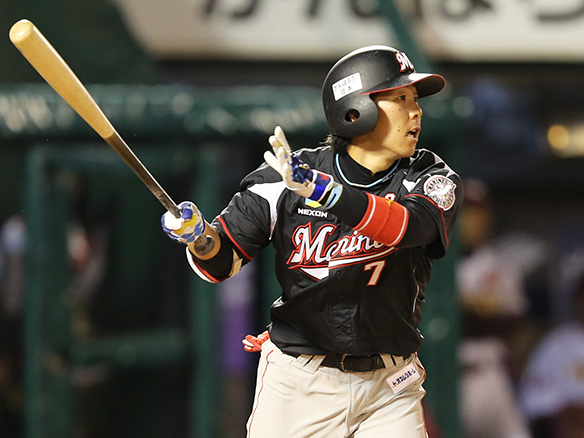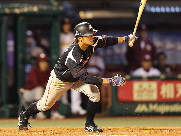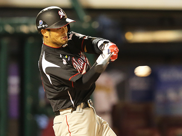 2番 荻野貴 左安 ランナー2塁からレフトへのヒットを放つ 1,3塁 |