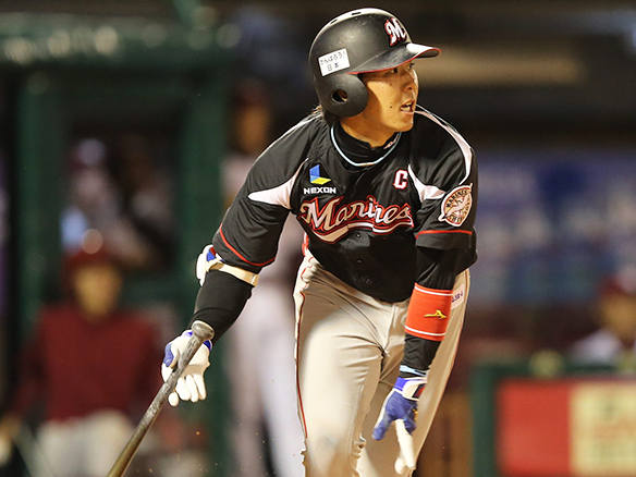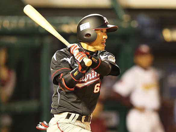 1番 岡田 二ゴ セカンドゴロの間にロッテ1点をあげる 楽3-2ロ 2アウト2塁 ![]() 3