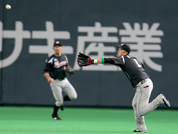 3番 田中賢 左邪飛 ファウルフライを角中(左)が捕球してバッターアウト 1アウト |