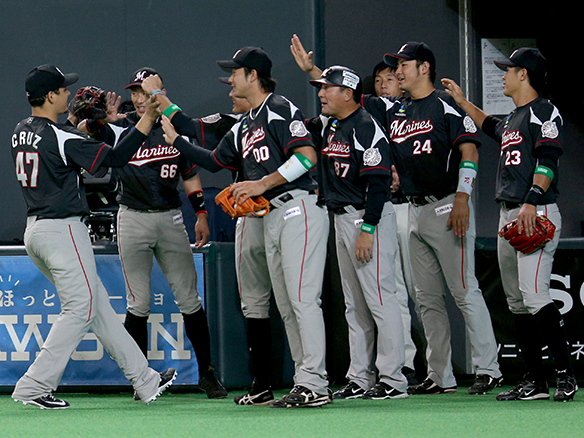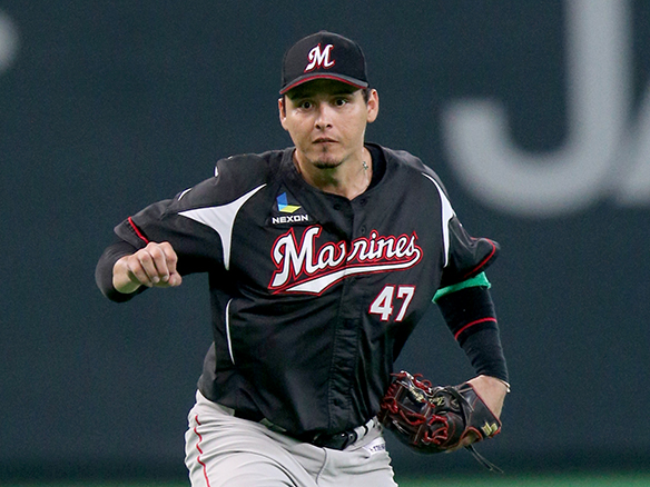 8番 今江 左中二 1アウト満塁の0-1からセンターへのタイムリーツーベースでロッテ逆転! 日1-3ロ 2塁 ![]() 1