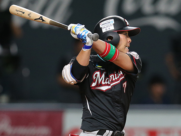 5番 福浦 右中二 ライトへのツーベース 2塁 |