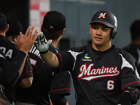 6番 レアード 空三振 外角の落ちる球に空振り三振でバッターアウト 2アウト |
