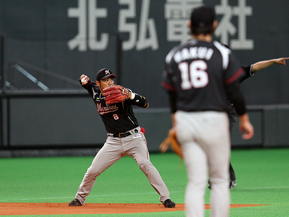 2番 角中 一ゴ ど真ん中のフォークを打つもファーストゴロ 3アウトチェンジ |