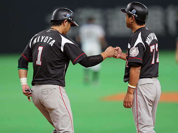 3番 清田 四球 内角のフォークを見送り四球を選ぶ 1塁 |