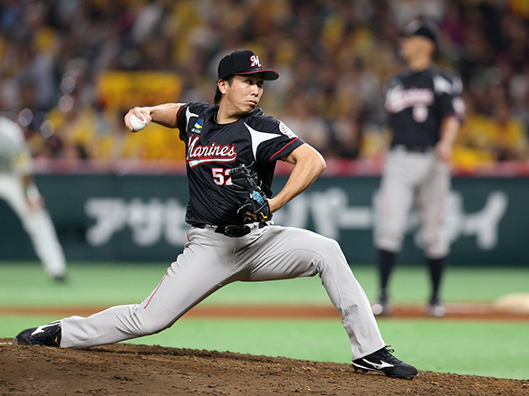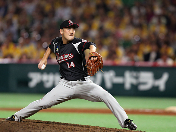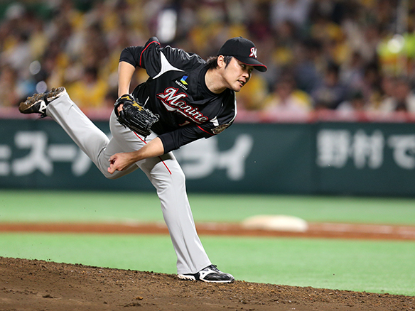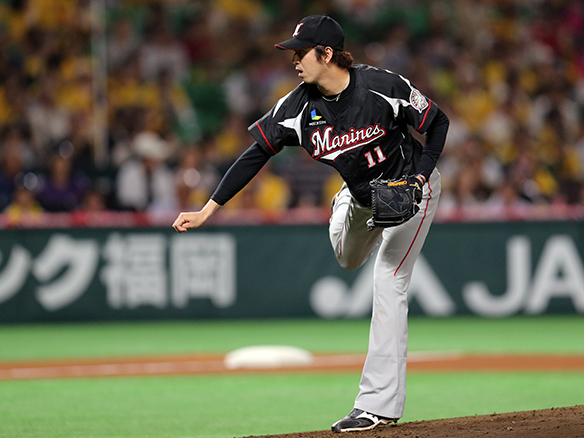投手 千賀 4番 福浦 四球 内角のフォークを見送りフォアボールを選ぶ 満塁 |