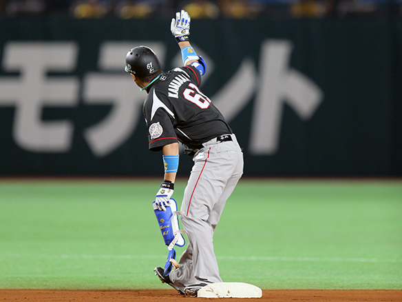 2番 角中 右翼二 ライトへの二塁打 2,3塁 |