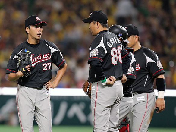 5番 李大浩 空三振 7球粘るも外角低めのフォークに空振り三振 2アウト |