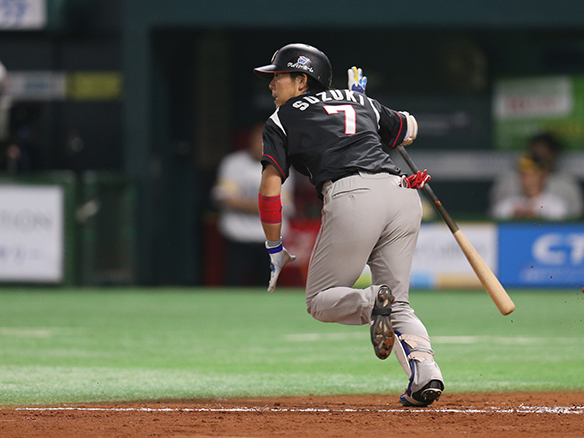 2番 今宮 中安 センターへのヒットで出塁 1塁 |