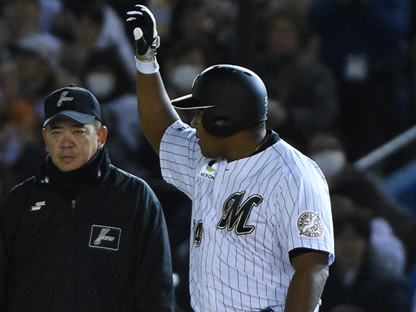 6番 レアード 左安 低めの落ちる球をレフトへ打ってヒット 1塁 |