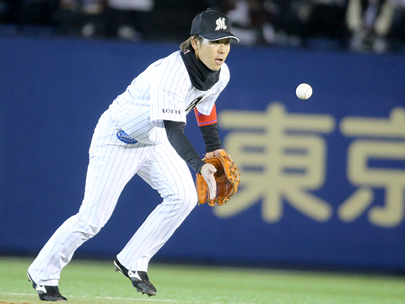 3番 田中賢 右安 1アウト2塁の3-2からライトへのタイムリーヒット ロ3-2日 1塁 ![]() 3