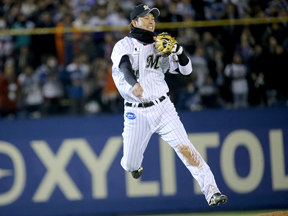 6番 レアード 空三振 一打同点の場面でワンバウンドした球に空振り、三振を喫する 3アウトチェンジ |