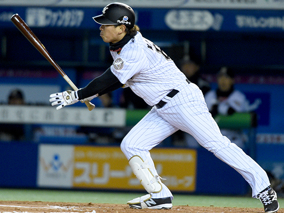 投手 涌井 3番 田中賢 左安 レフトへのヒットを放つ 1塁 |