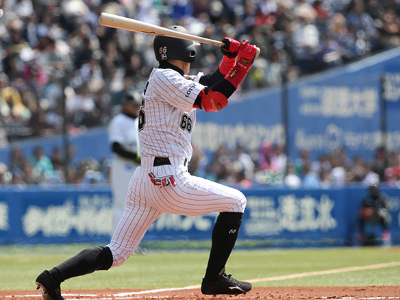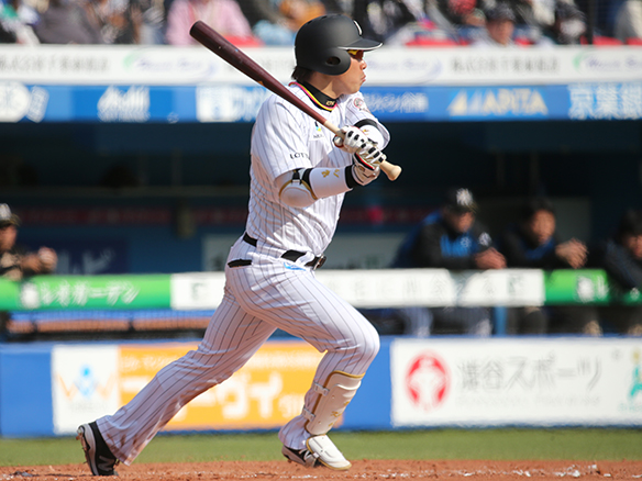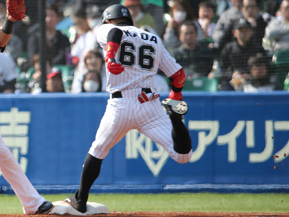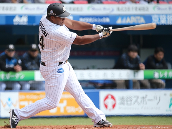7番 レアード 左安 レフトへのヒットを放つ 1塁 |