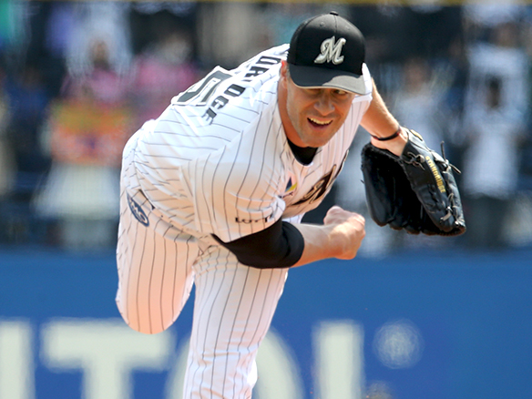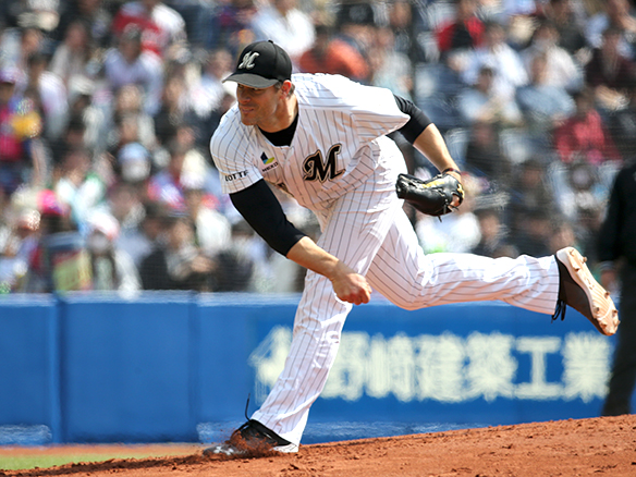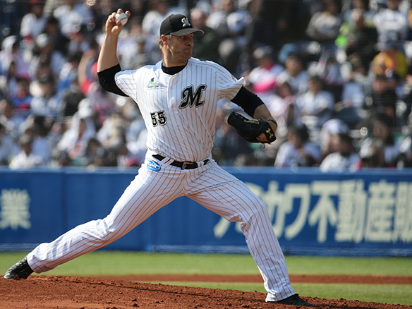 投手 スタンリッジ 9番 中島卓 四球 一度もバットを振ることなくストレートのフォアボールを選ぶ 1塁 |