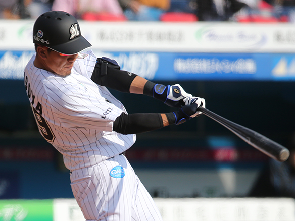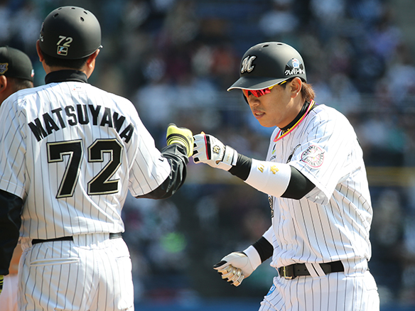 5番 角中 左安 レフトへのヒットを放つ 1,2塁 |