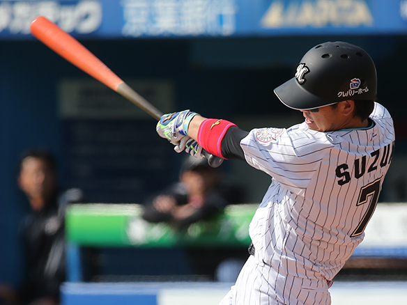 鈴木のライトへの飛球はあと一歩スタンドに届かず