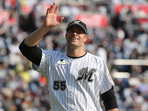 七回を投げ終えたスタンリッジはスタンドに手を振る