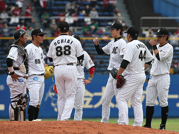 投手 益田 ピッチャー益田に代わって阿部がマウンドにあがる |