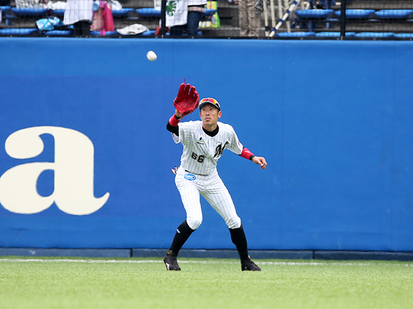 井上はフェンス直撃の二塁打でチャンスを演出!